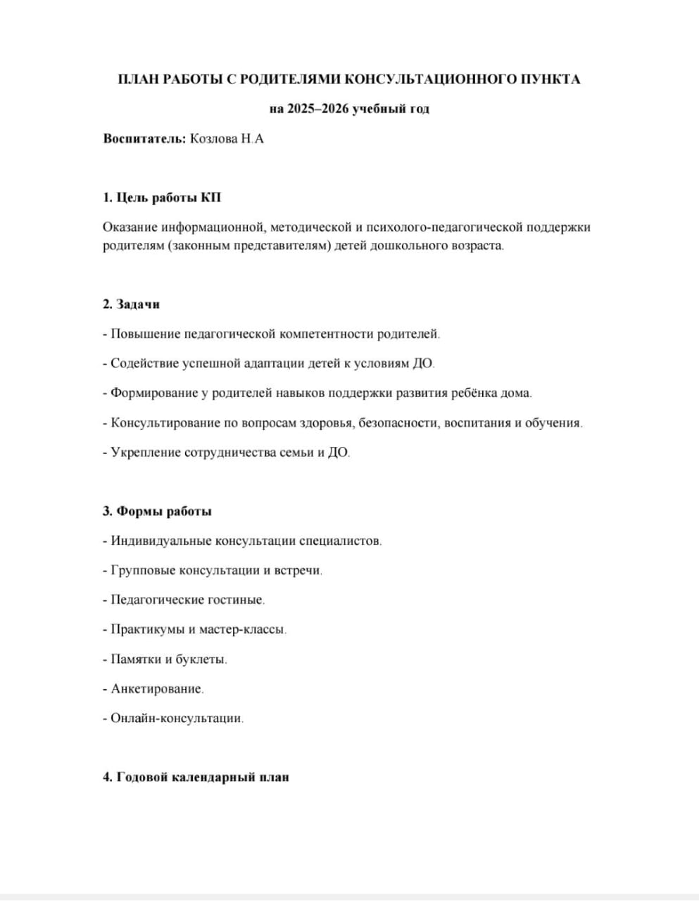 В 2025–2026 учебном году консультационный пункт детского сада продолжает свою деятельность, направленную на повышение педагогической грамотности родителей и создание условий для успешного всестороннего развития детей дошкольного возраста.